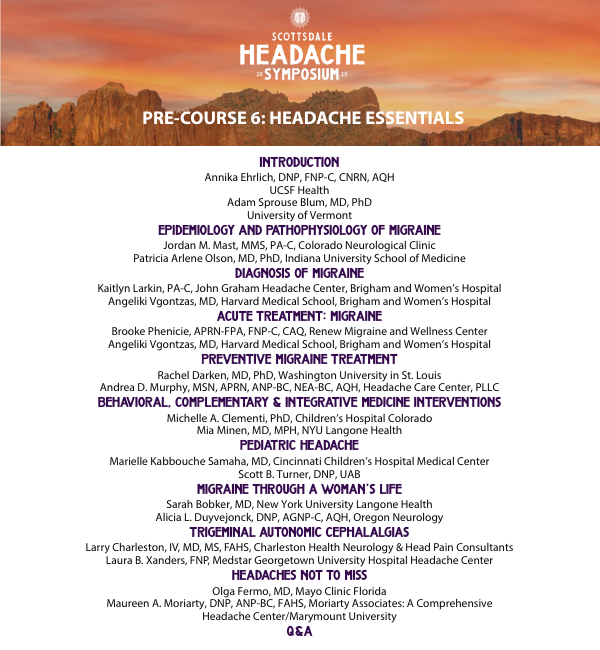 2025 Scottsdale Headache Symposium Pre-Course 6: Headache Essentials